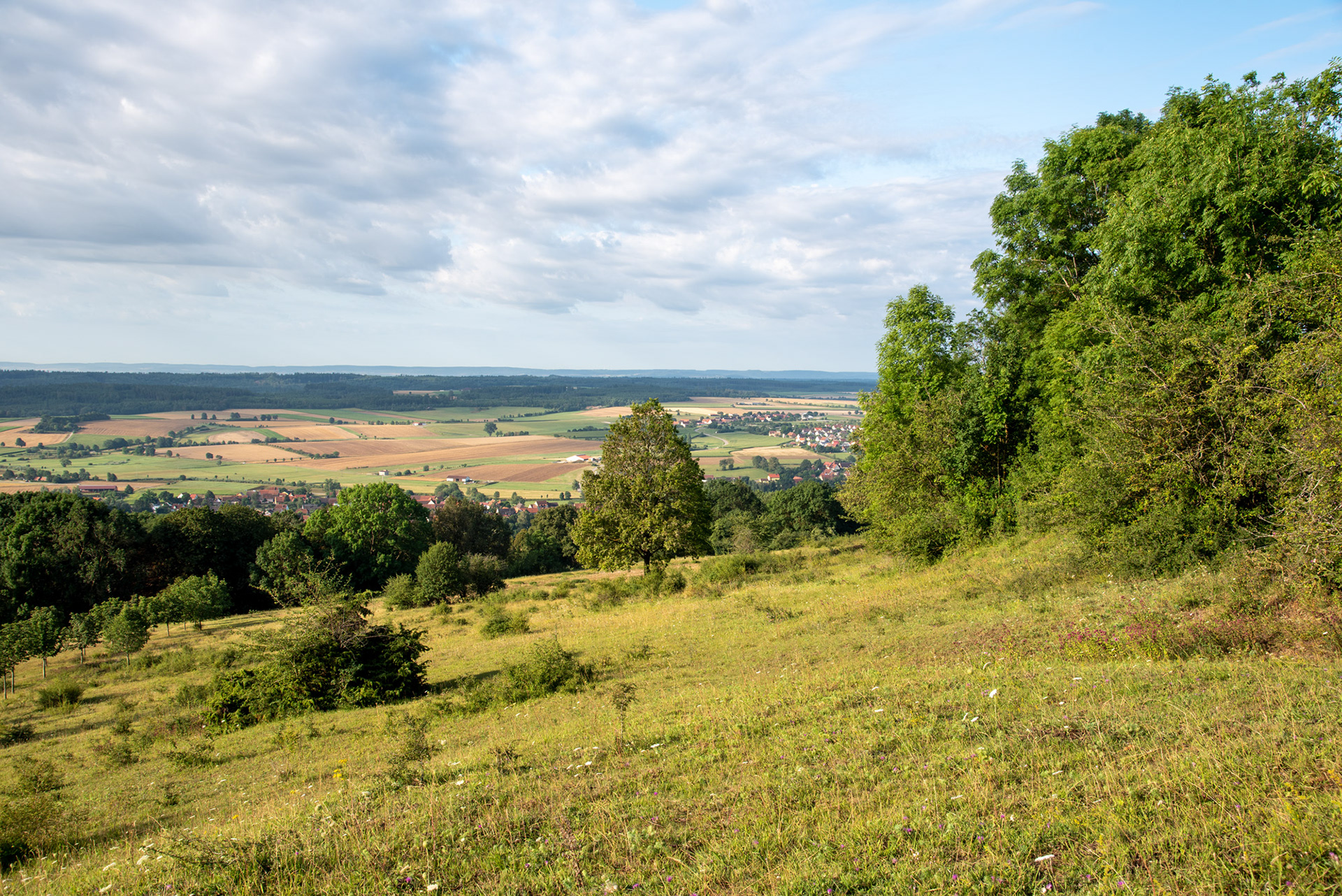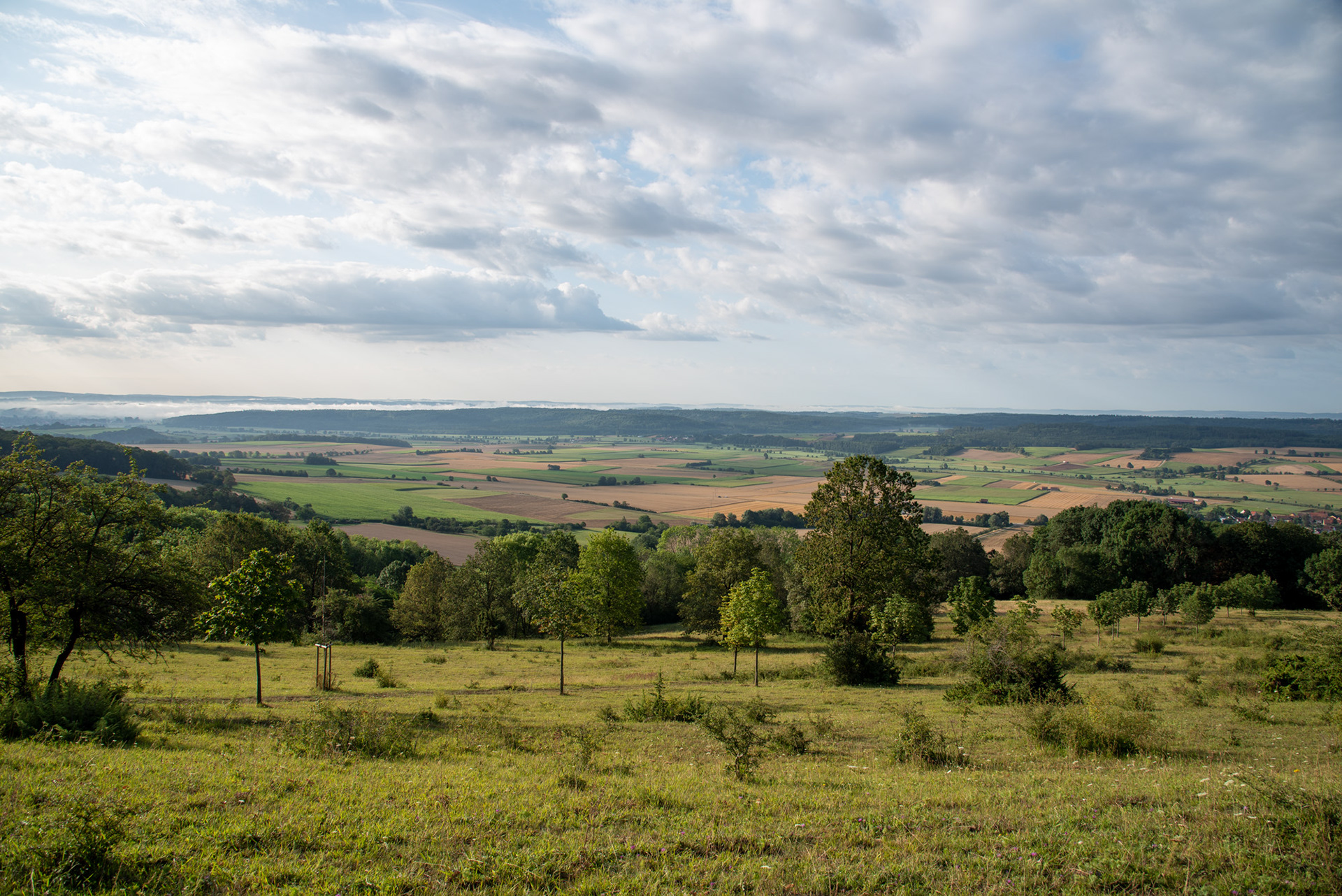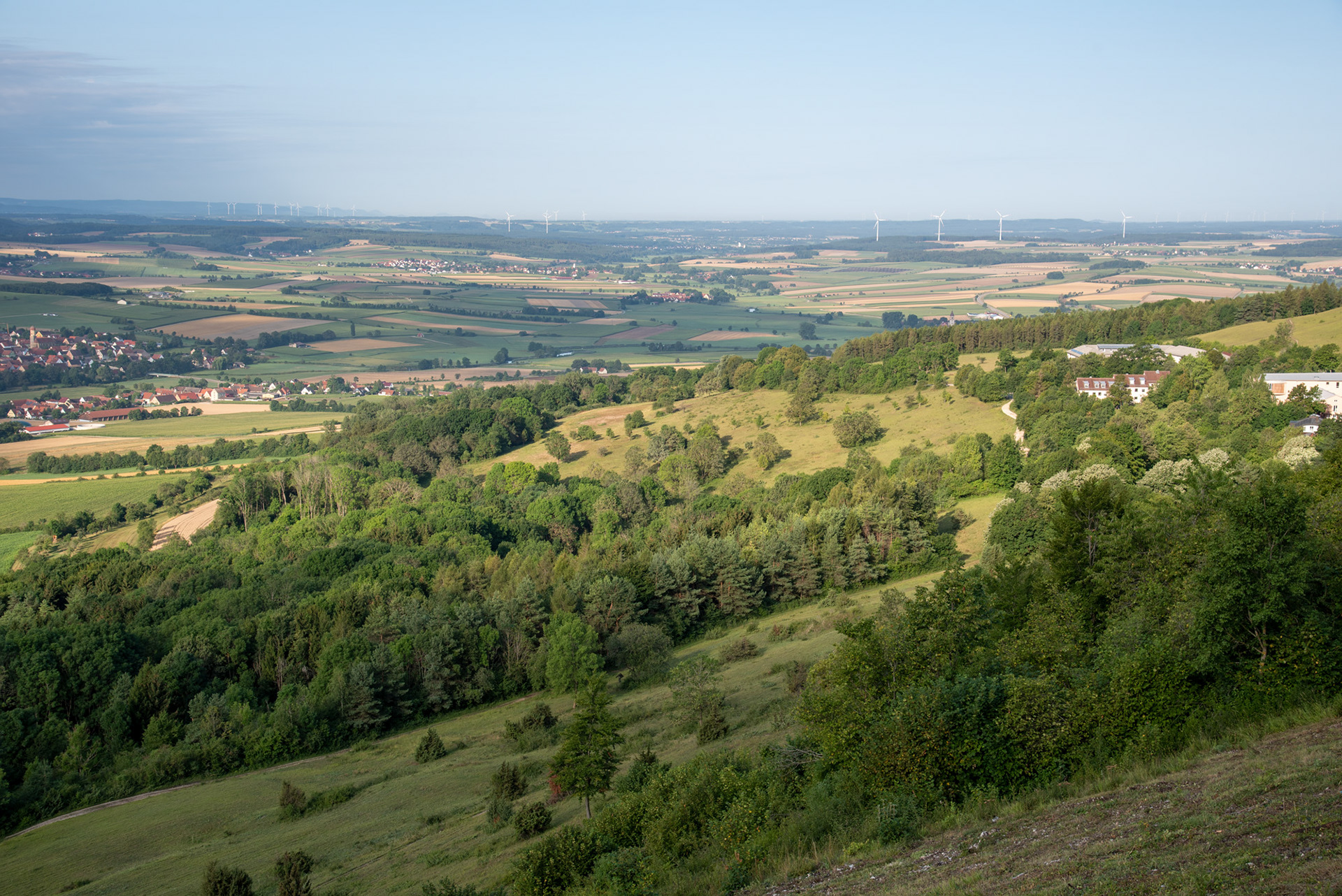Ausblicke vom Hesselberg am Morgen im August.