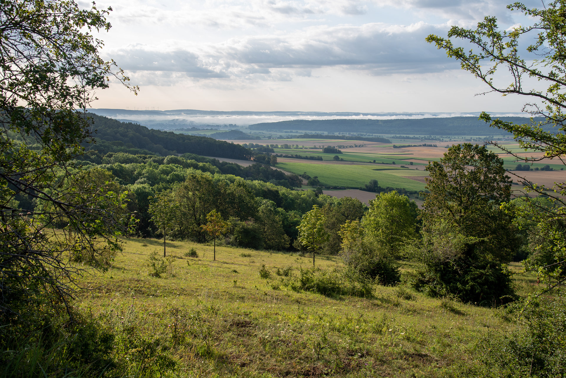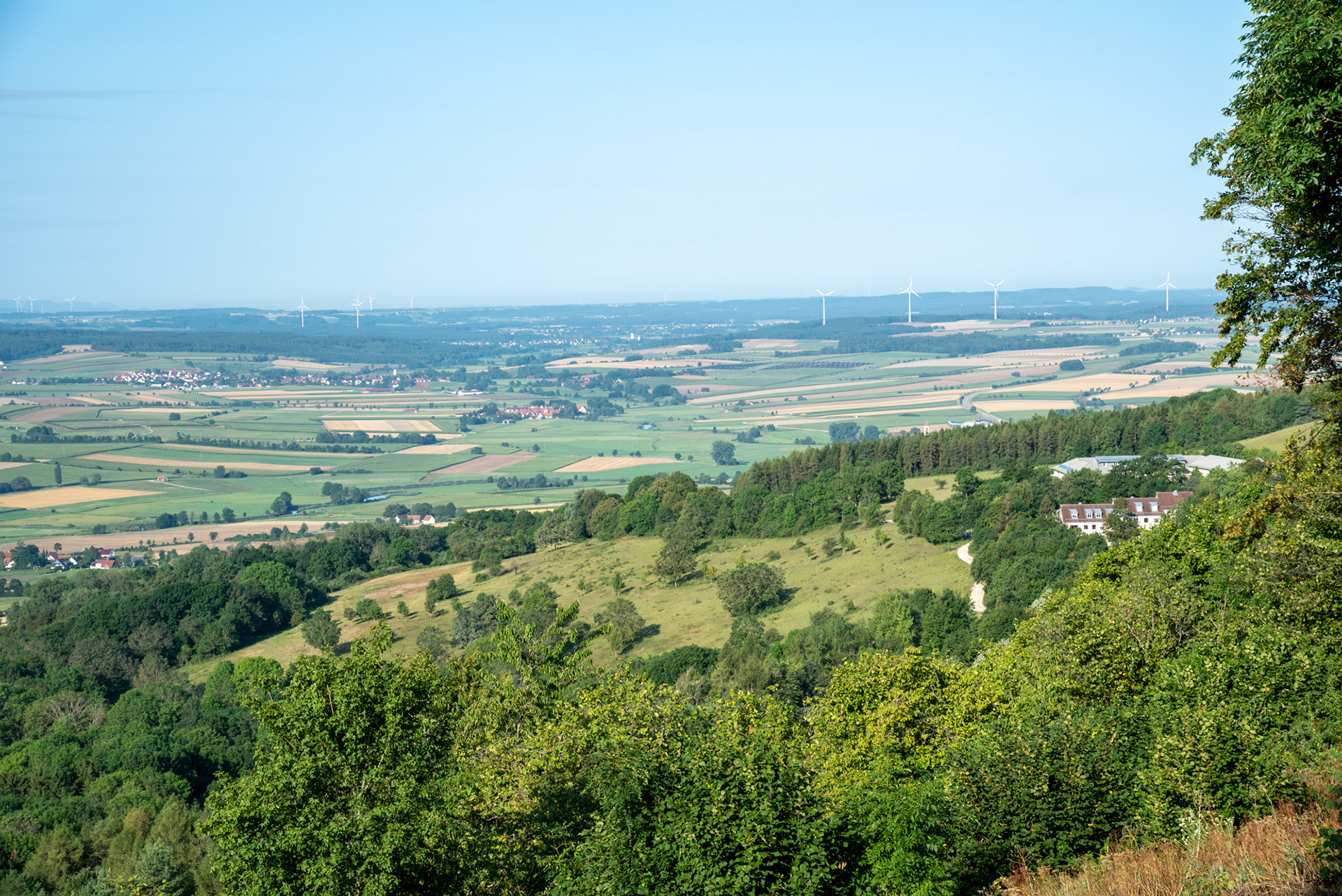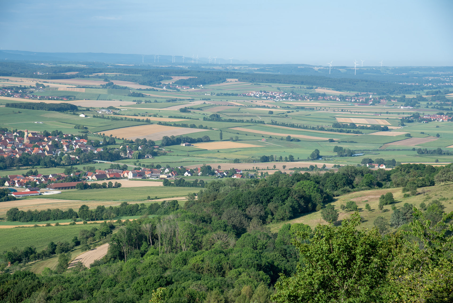 Ausblicke vom Hesselberg am Morgen im August.